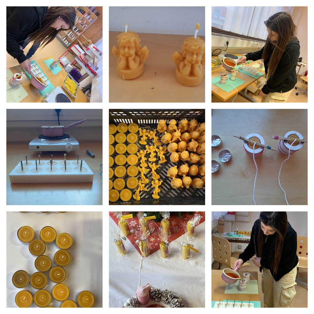 In der SWT wird vorweihnachtliche Stimmung verbreitet: die KiB1, KiB2, BH1 und W1 fertigten in ihren Fachpraxisstunden händisch und mit viel Liebe Adventkränze, Bienenwachskerzen, Christbaumanhänger und selbstgebackene Kekse an, die am 22.11. am Elternsprechtag bei unserem Weihnachtsmarkt an die Eltern verkauft wurden. Neben den Bastelarbeiten lernten die Schüler:innen so praktisch die verschiedenen Aufgaben und Positionen innerhalb einer Firma kennen, beschäftigten sich mit Abrechnungen und Belegen und übten außerdem wie Verkaufsgespräche geführt werden.