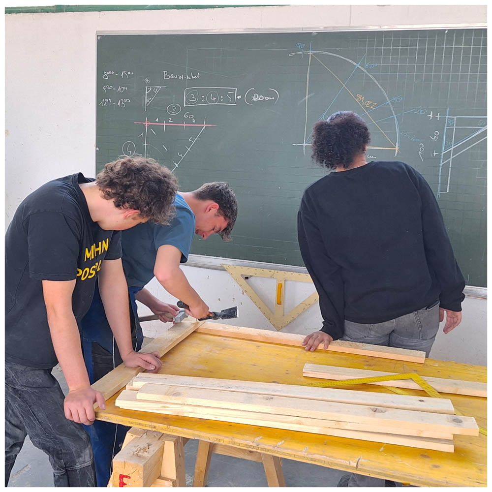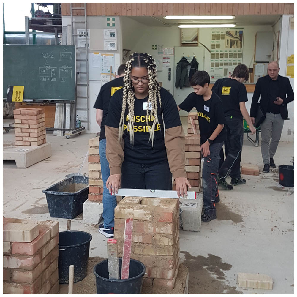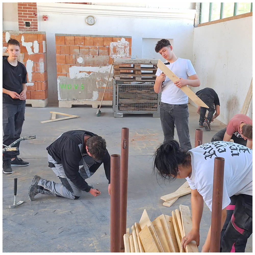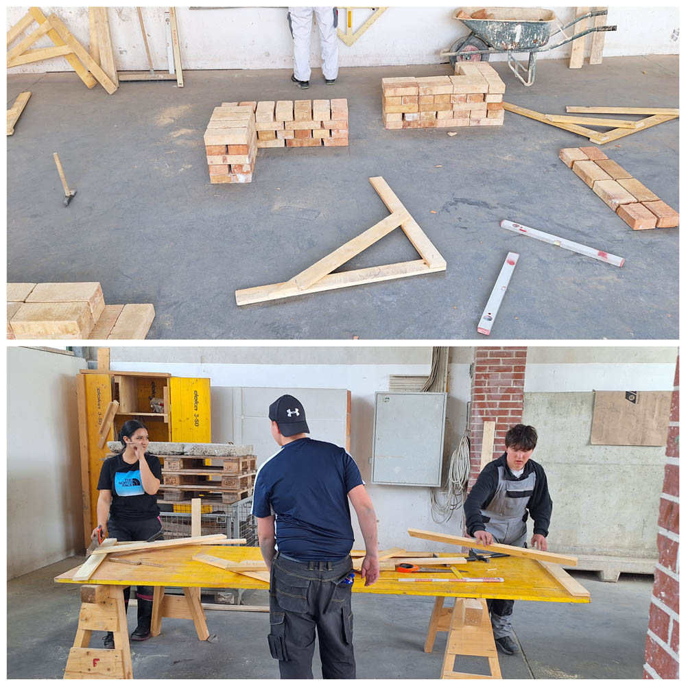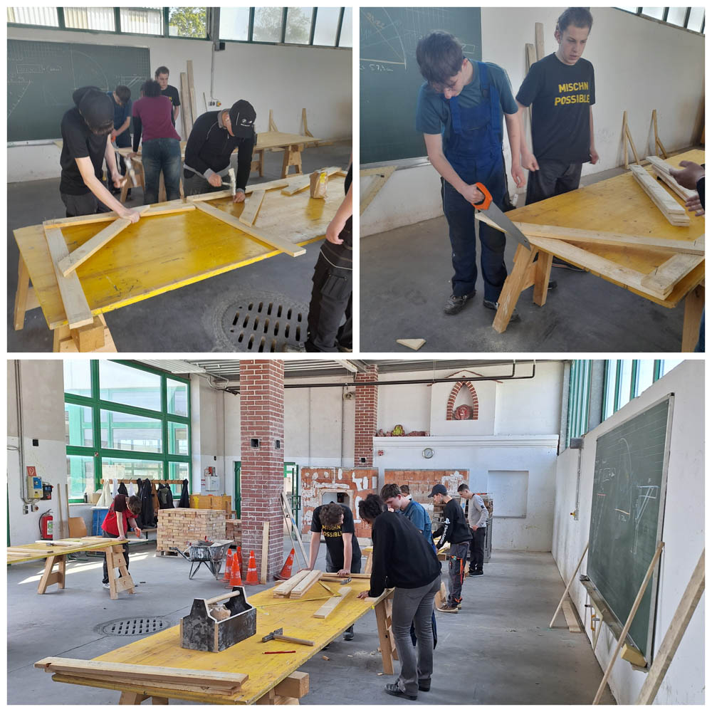 Während eines zweitägigen Praktikums an der Bauakademie in Guntramsdorf Ende April haben die Schüler:innen der Holz- und Bau-Klasse verschiedene Tätigkeiten des Hochbauers, Zimmerers und Schalungsbauers kennengelernt und unter fachkundiger Leitung selbst durchgeführt wie z.B. die Herstellung von Bauwinkeln und das Errichten von Ziegelmauern in verschiedenen Mauerstärken.