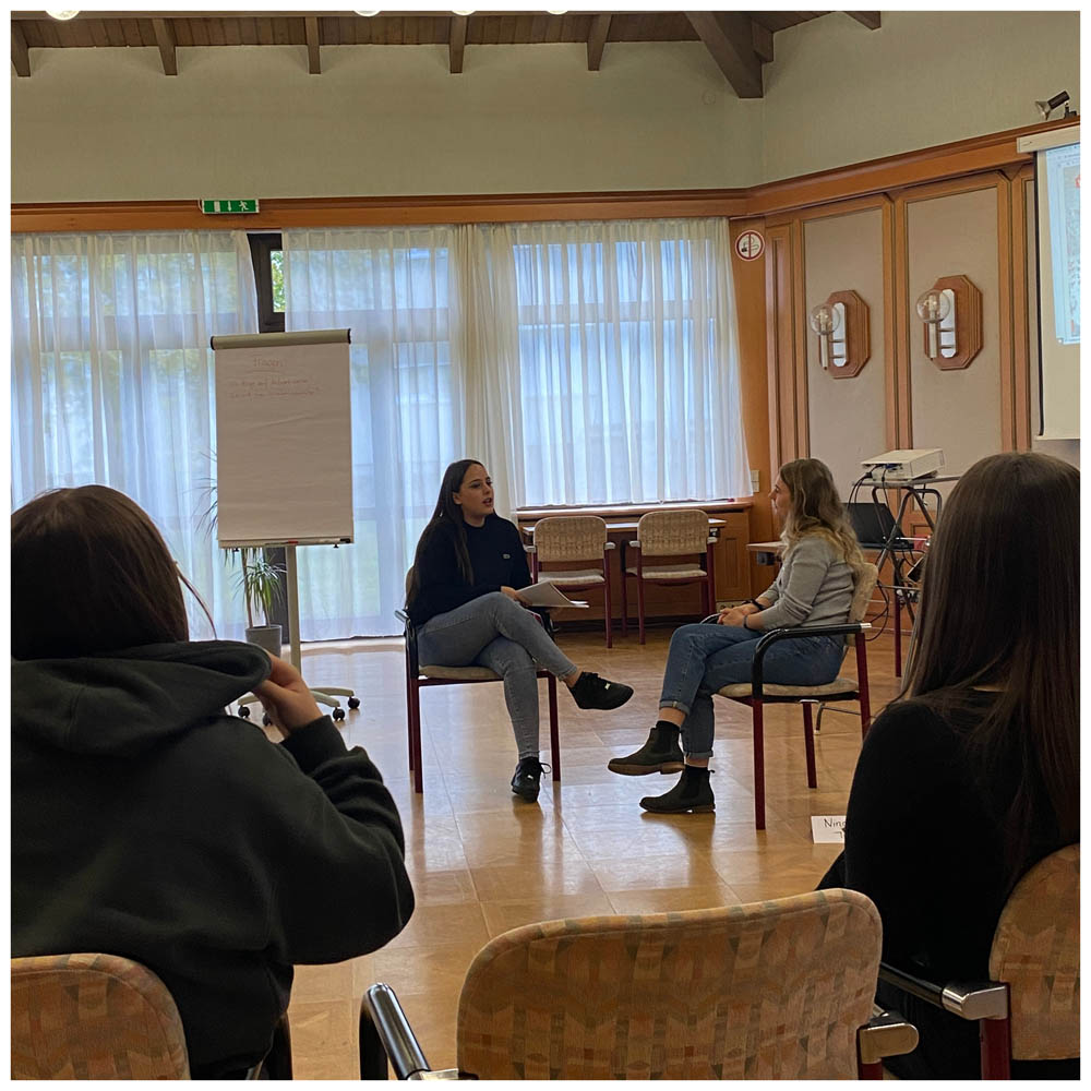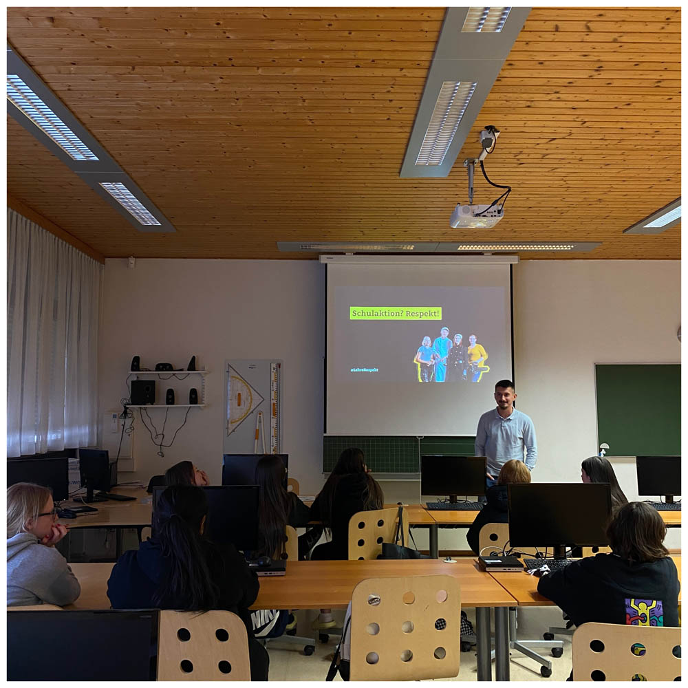 Am 11.12. fand der Abschluss der Polizei Workshopreihe in der GSS-Klasse statt. Gemeinsam mit Herrn Vogel wurden die Inhalte des Jugendschutzgesetzes interaktiv wiederholt. Danach stellten die Schülerinnen sich in Kleingruppen dem Thema Zivilcourage anhand eines Beispiels.
