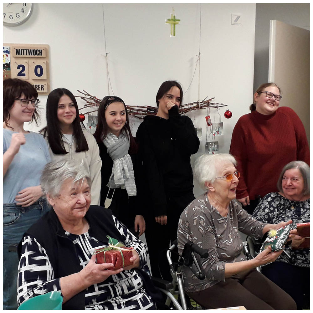 Die GSS-Schülerinnen gingen am Mittwoch den 20.12. gemeinsam ins Pflege- und Betreuungszentrum Mödling, wo sie von Frau Kroupa empfangen wurden. Diese führte sie durch das Haus. Das Highlight bildete die persönliche Überreichung der Geschenke an die Bewohner des Wohnbereichs 4. Die Freude auf beiden Seiten war groß