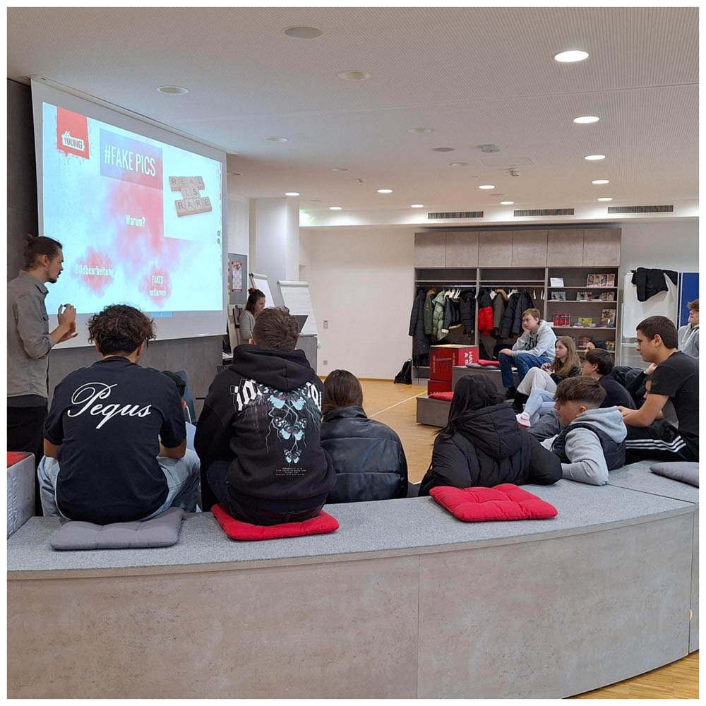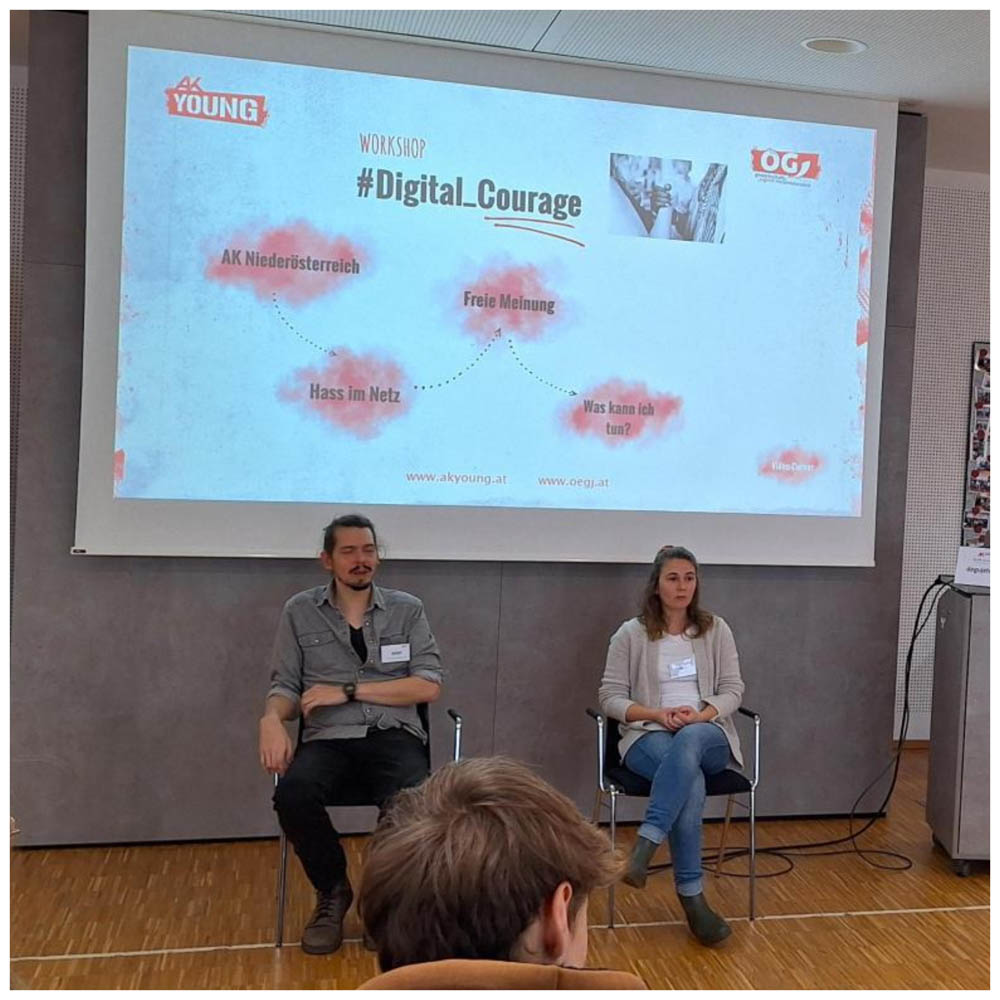 In der Arbeiterkammer St. Pölten besuchten die Schüler:innen der B1 und W1 die Workshops "Digital Courage" & "clickliketrust". Zuerst wurden sie über ihren Medien-Konsum befragt. Später erhielten sie wichtige Informationen über den richtigen Umgang mit Sozialen Medien, die Auswirkungen von Cyber-Mobbing und Fake-News.