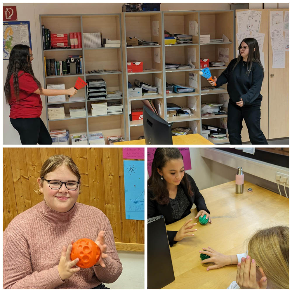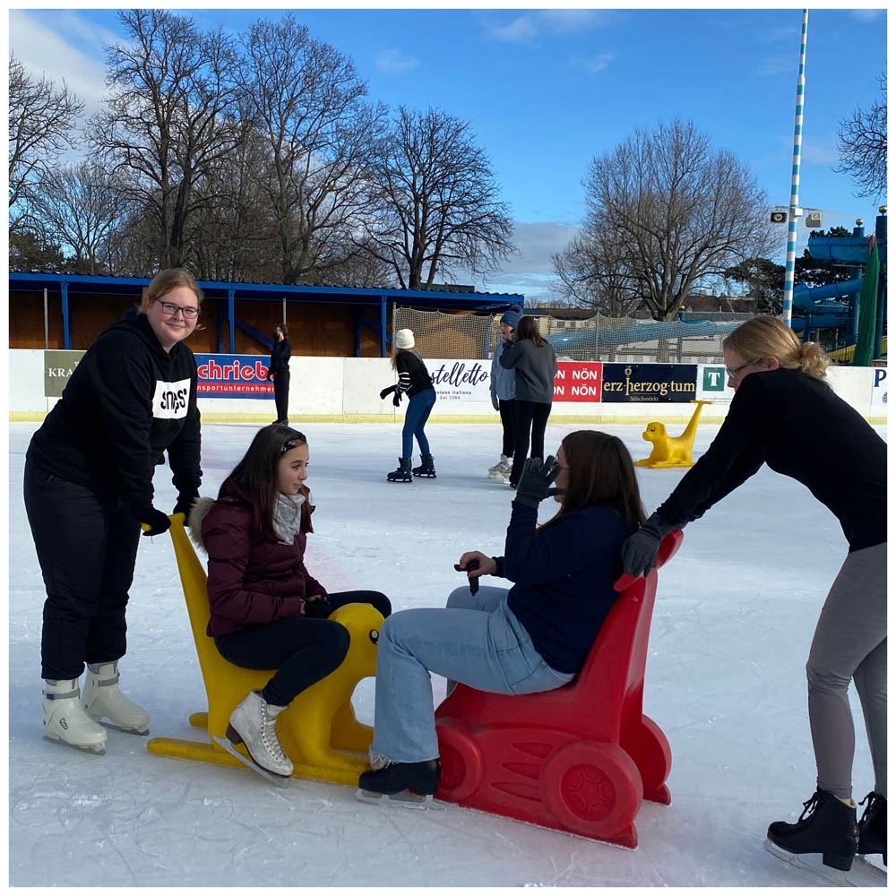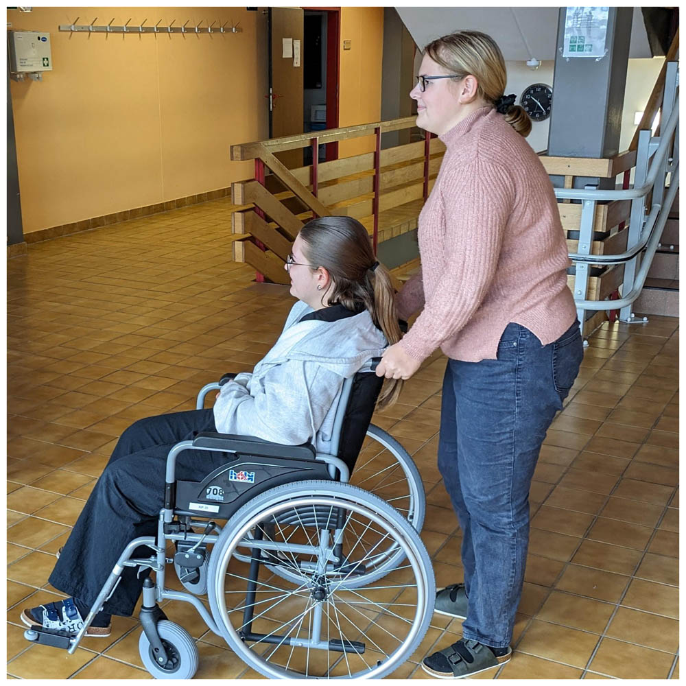 Sie probierten diverse Aktivierungsspiele selbst aus. Weiters wurde ihnen der Umgang mit dem Rollstuhl näher gebracht, sie schoben eine Mitschülerin oder bewegten sich darin selbst fort.