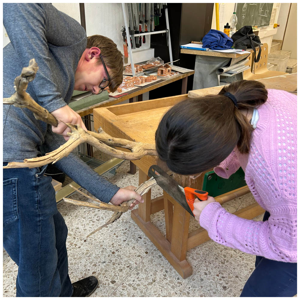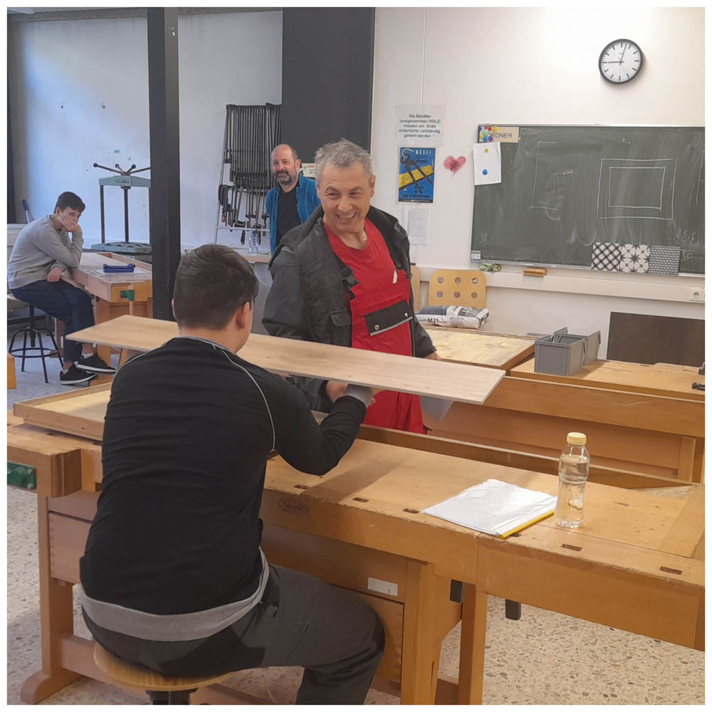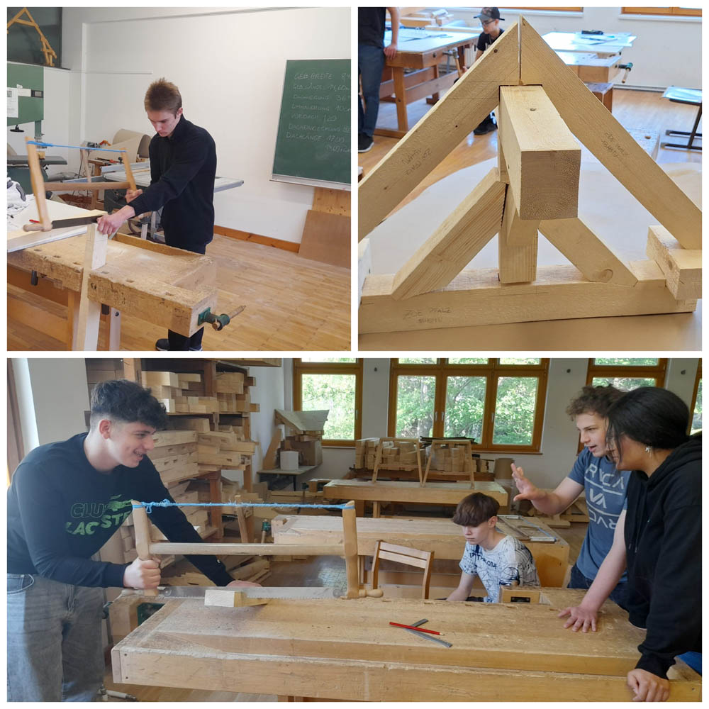 Am 13.05. durften die Schüler:innen der Holz-Bau-Klasse die HTL Mödling besuchen. Wir konnten einige Berufe näher kennenlernen und auch mitarbeiten. Im Bereich der Innenarchitektur konnten wir uns die Tischlerei mit einem hochwertigen Maschinenpark anschauen. In der Zimmerei konnten die Schüler:innen mit Werkzeugen Holz bearbeiten.