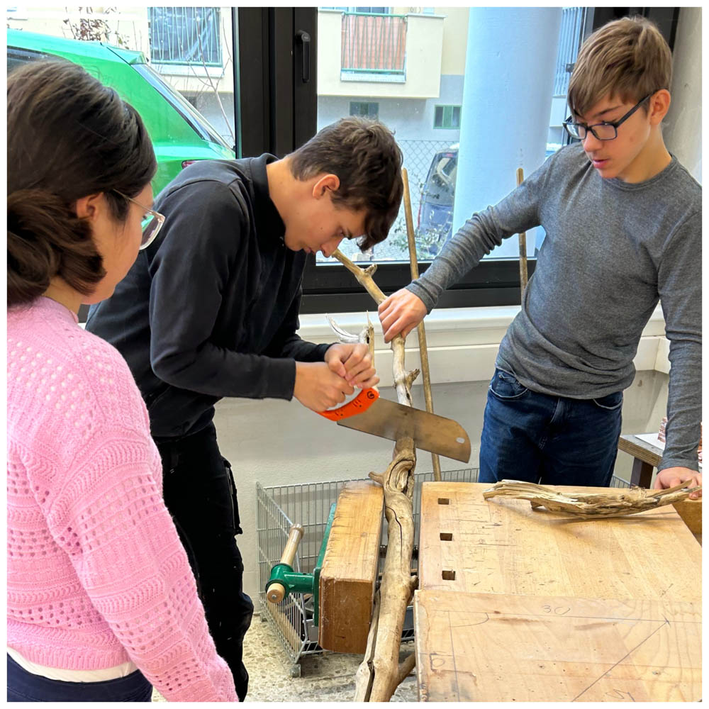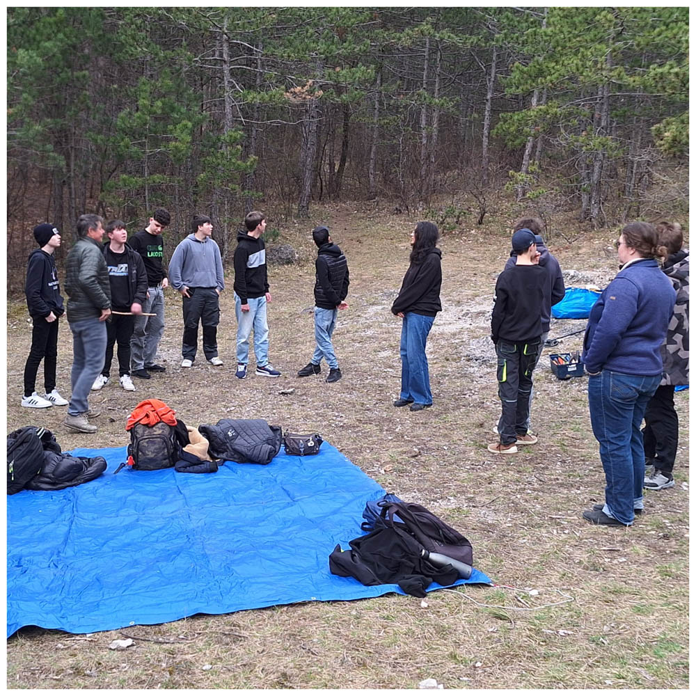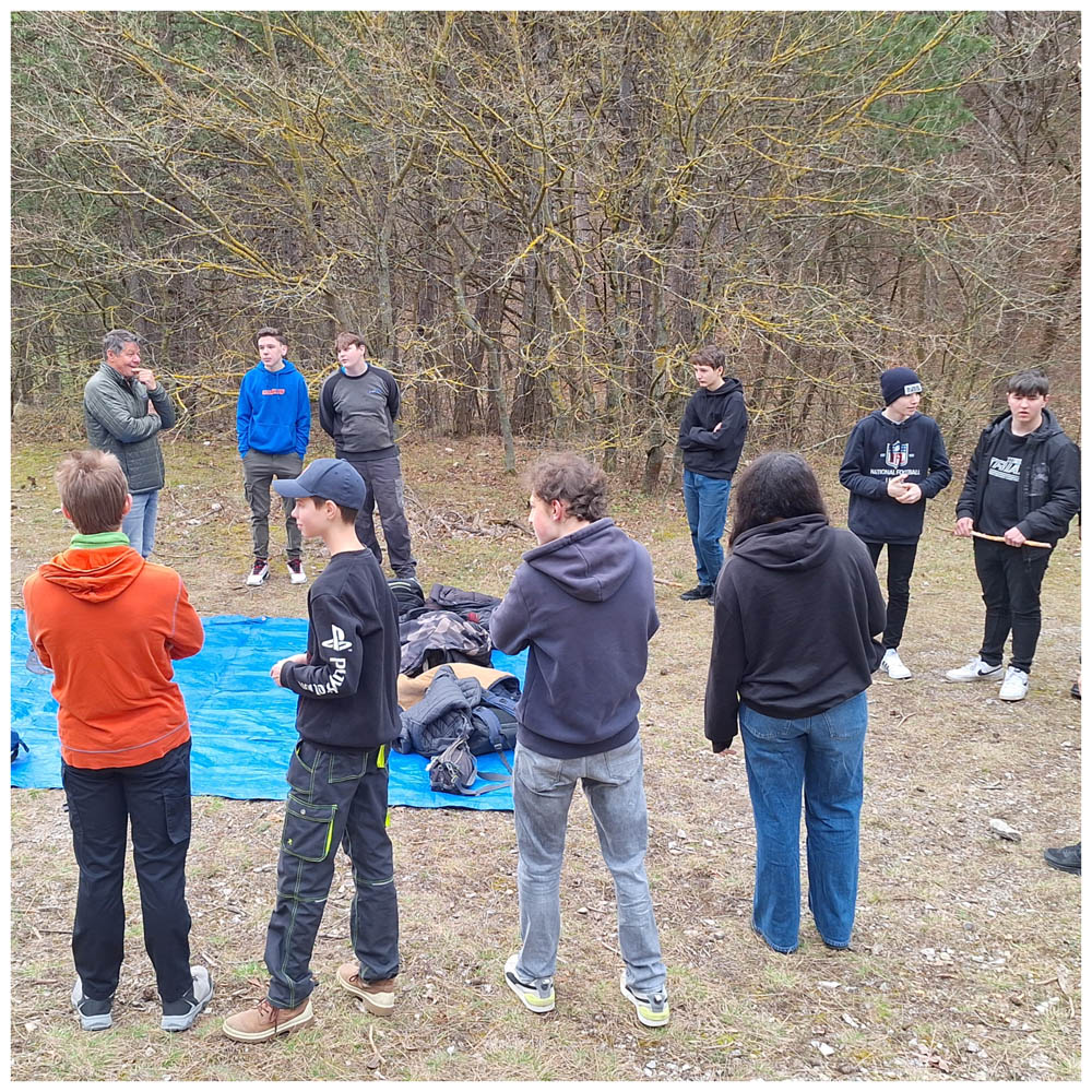 Die Holz-Bau-Klasse machte sich am Montag den 11.03. auf den Weg ins Prießnitztal Mödling um mit einem Waldpädagogen den Lehrausgang “Waldpädagogik” zu absolvieren. Die Schüler:innen durften unter Anleitung mit Handsägen verschiedene Bäume schlägern und bauten daraus dann gemeinsam einen Unterschlupf. Dadurch wurde die Teamarbeit der Klasse gefördert.