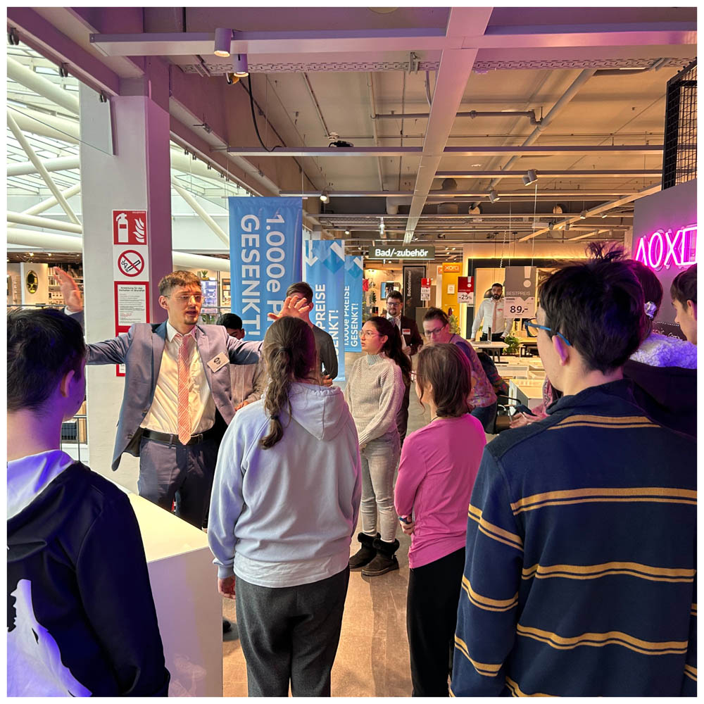Am Freitag, den 26.01., besuchten die Schüler:innen der KiB1, KibB2, W1 und BH1 den Lehrlingstag der Firma XXXLutz in Brunn am Gebirge. An diesem Tag schlüpften die Lehrlinge der Firma in die Rollen ihrer Vorgesetzten und führten interessierte Gruppen durch ihr Möbelhaus. Wir erfuhren Spannendes über die verschiedenen Lehrberufe im Einzelhandel und in der Systemgastronomie.