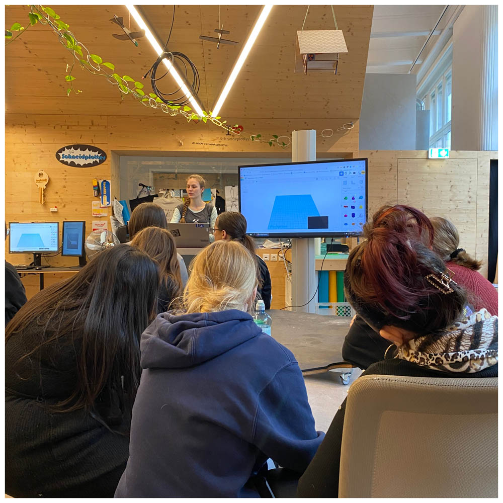 Anschließend ging es in das techLAB, wo den Mädels das 3D-Druckverfahren zuerst theoretisch nähergebracht wurde. Danach ging es praktisch an das Entwerfen und Drucken seines eigenen Schlüsselanhängers. Eine interessante Exkursion mit persönlichem Erinnerungsstück.