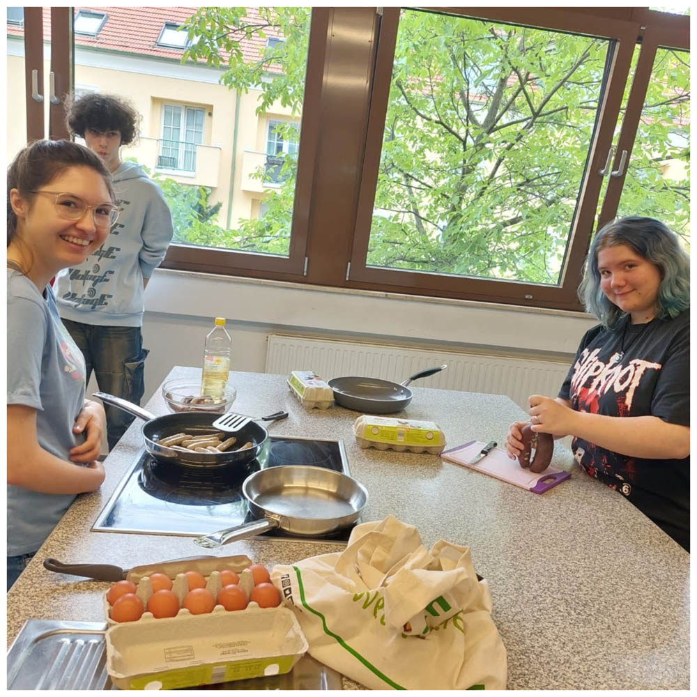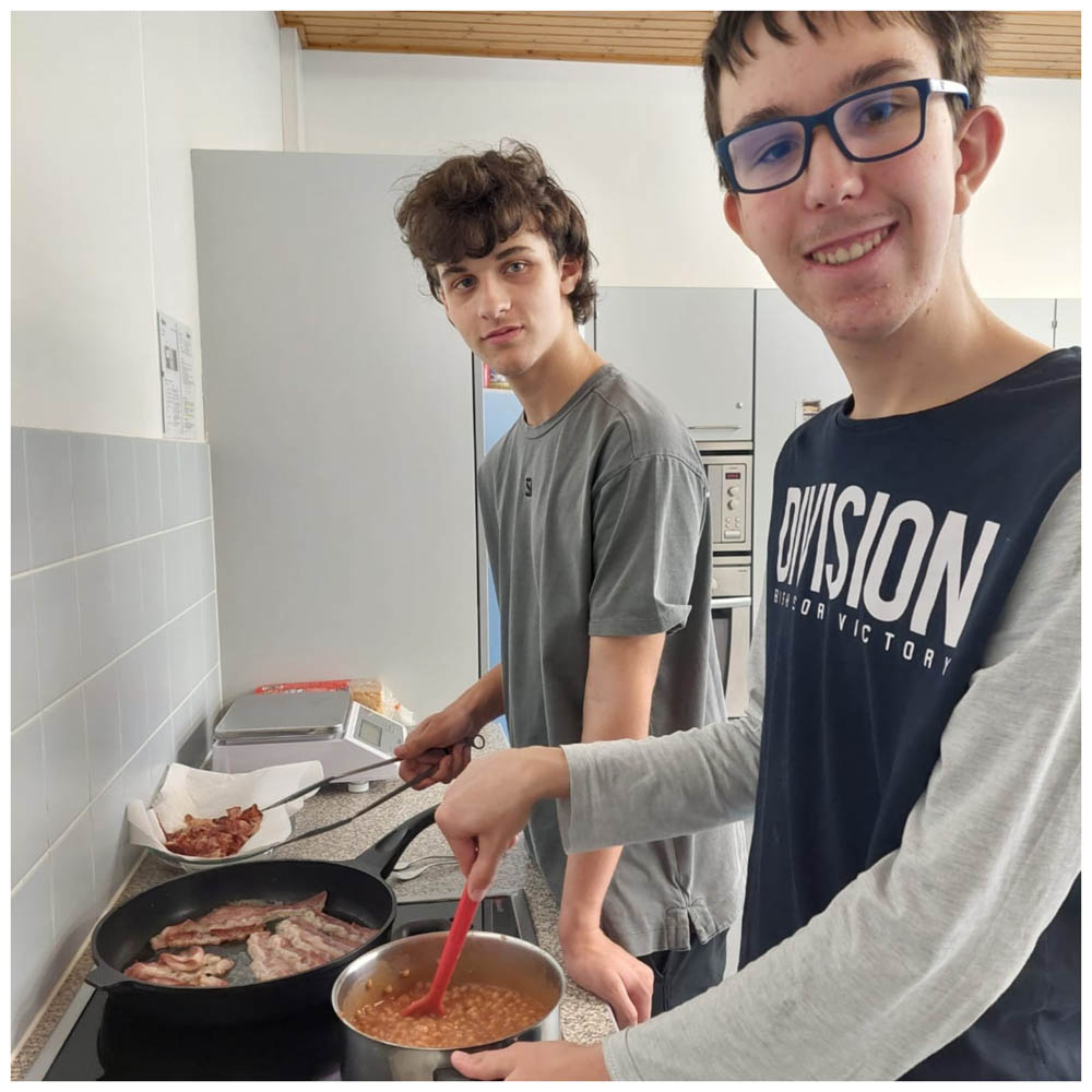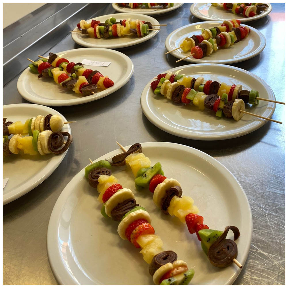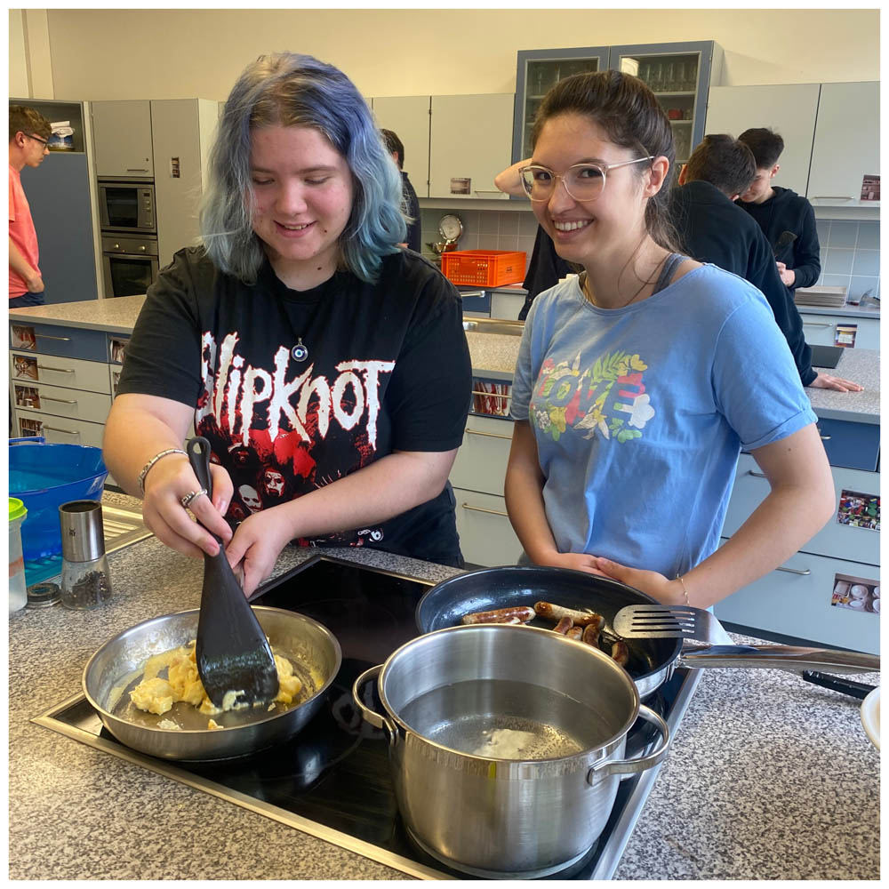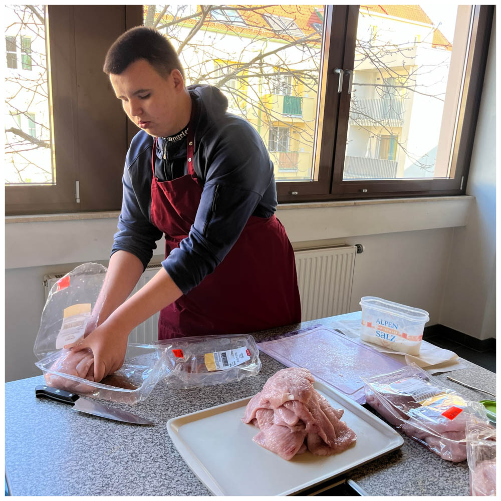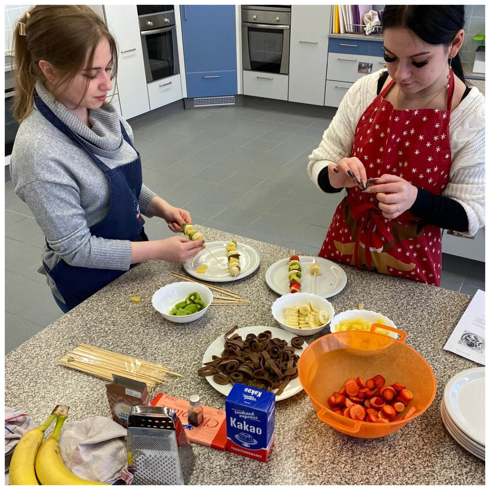 Das ganze Schulhaus duftet, wenn die Tourismus-Gruppe der W1 Fachpraxis in der Schulküche hat! Gestern haben die Schüler:innen wieder hervorragende Arbeit geleistet. Auf dem Speiseplan standen Kaspressknödelsuppe, Hendl-Piccata mit Linguine und chamäleonbunte Fruchtspieße.