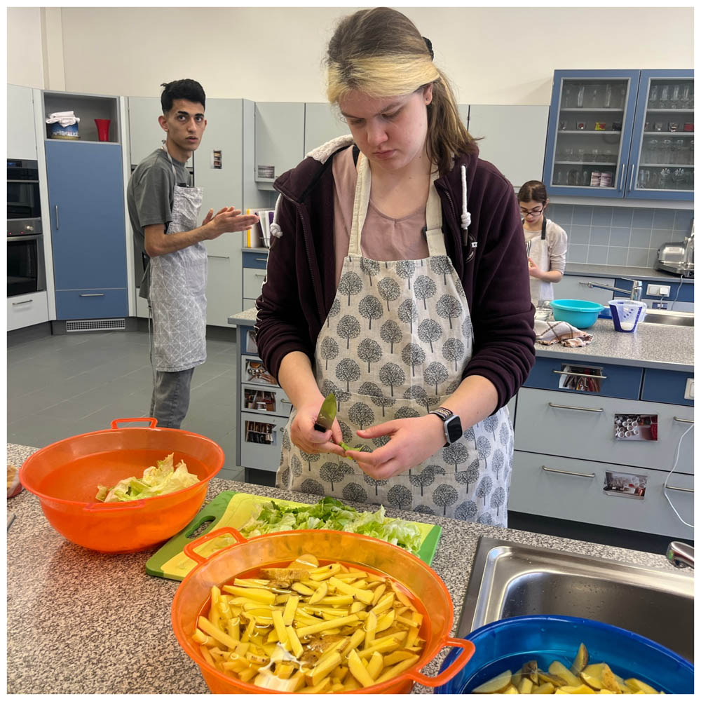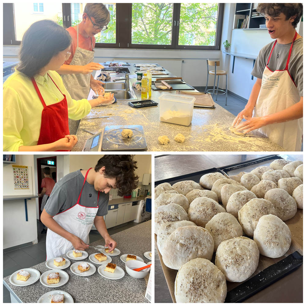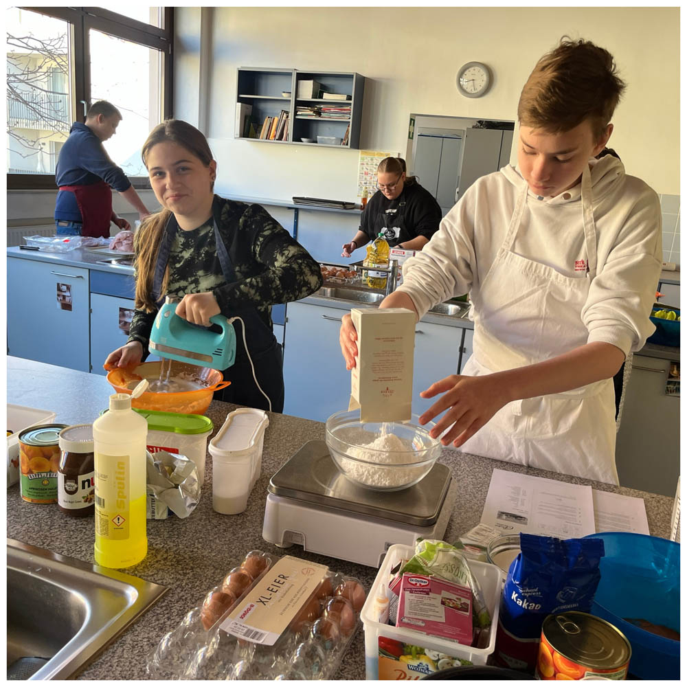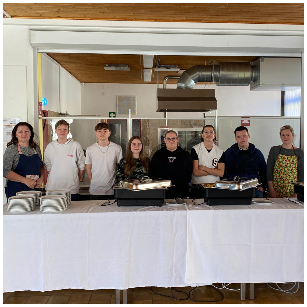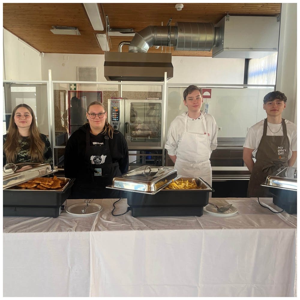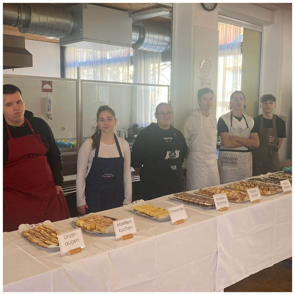 Die Gruppe Tourismus, ergänzt durch Zuzanna aus der B1 haben sich selbst übertroffen! An zwei Tagen haben sie insgesamt 12 Stunden in der Küche vorbereitet, gekocht, gebacken, abgewaschen ... etc. und das Ergebnis konnte sich sehen lassen: für Dienstag den 19.03. konnten sich Schüler:innen und Lehrer:innen ein leckeres Mittagessen bestellen. Serviert wurden Putenschnitzel mit Reis oder Pommes und Salat! Am Mittwoch den 20.03. Gab es dann eine große Auswahl an verschiedenen Kuchenvariationen. Ein großes Lob an die motivierten Schüler:innen und Frau Tatrai und Kolar für euer unermüdliches Engagement.