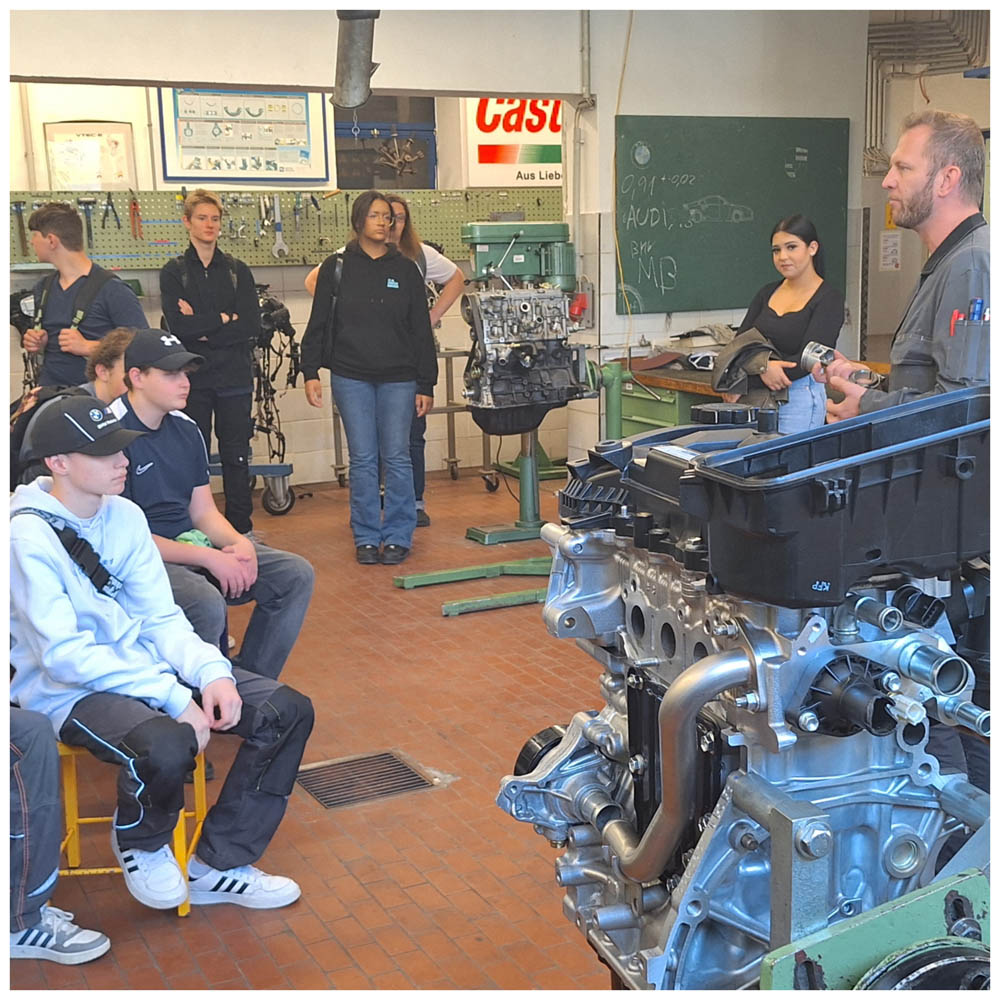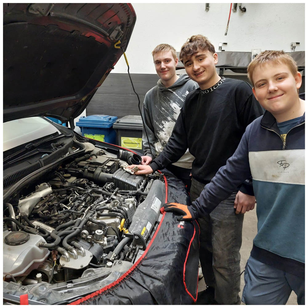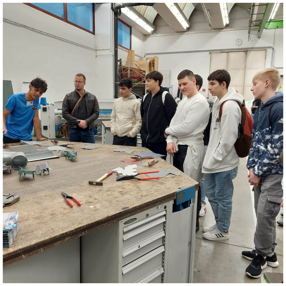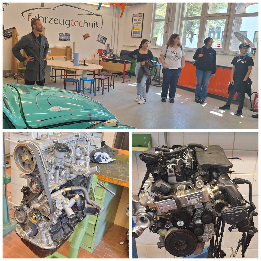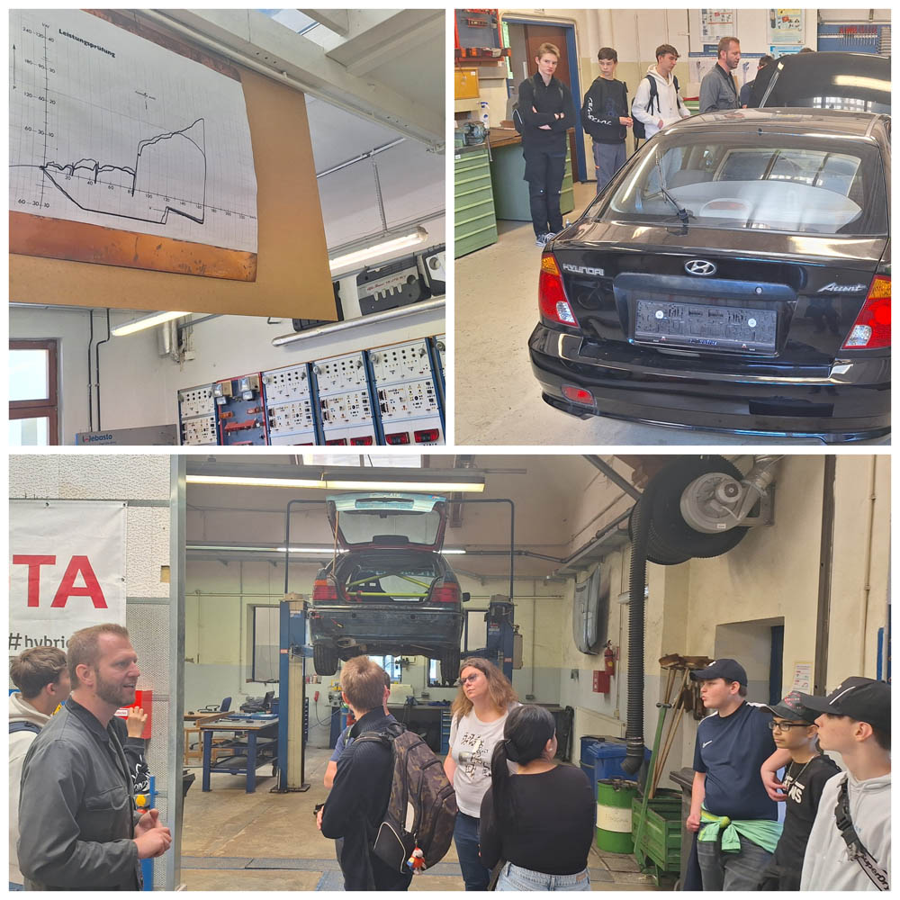 Abschließend besuchten wir noch die KFZ-Technik, wo die HTL-Schüler:innen an PKWs arbeiten oder schöne neue Autotüren ausbessern und neu lackieren. Vielen Dank an die HTL für diese interessanten Einblicke.