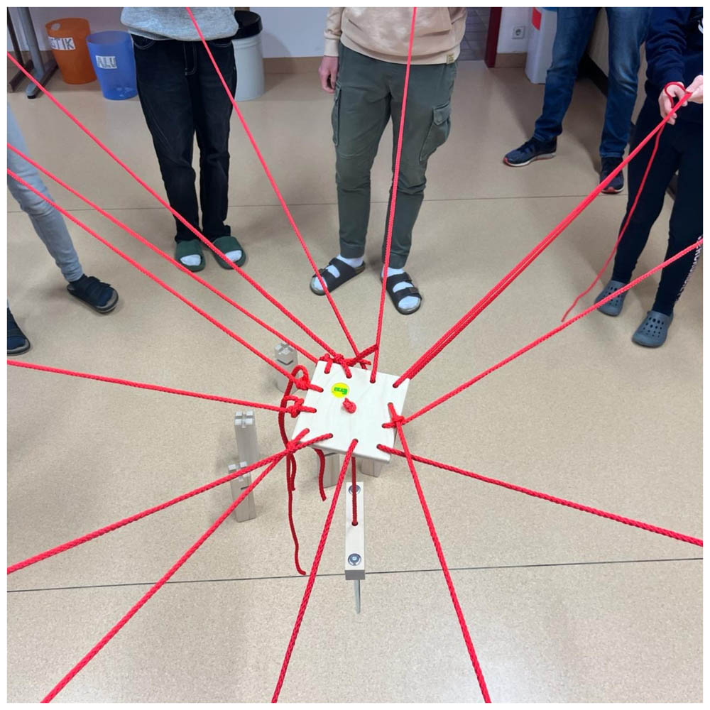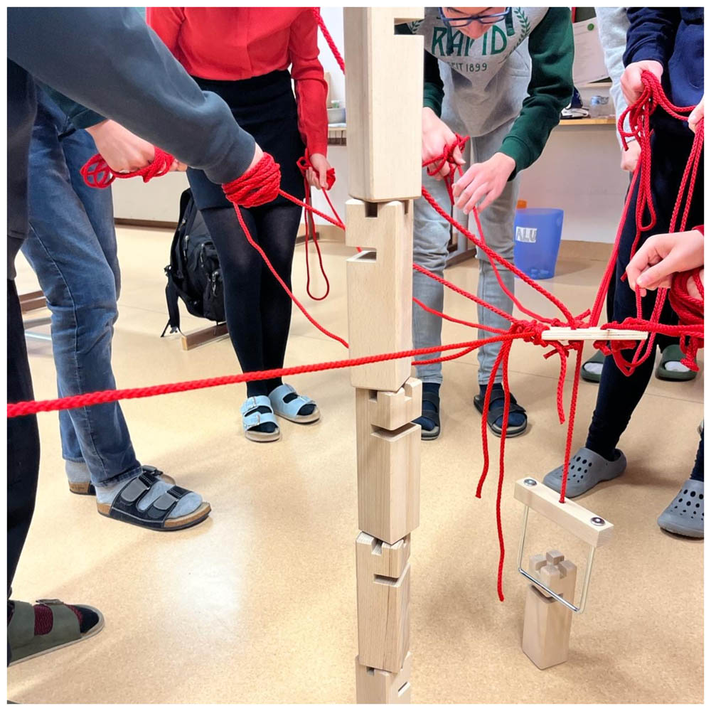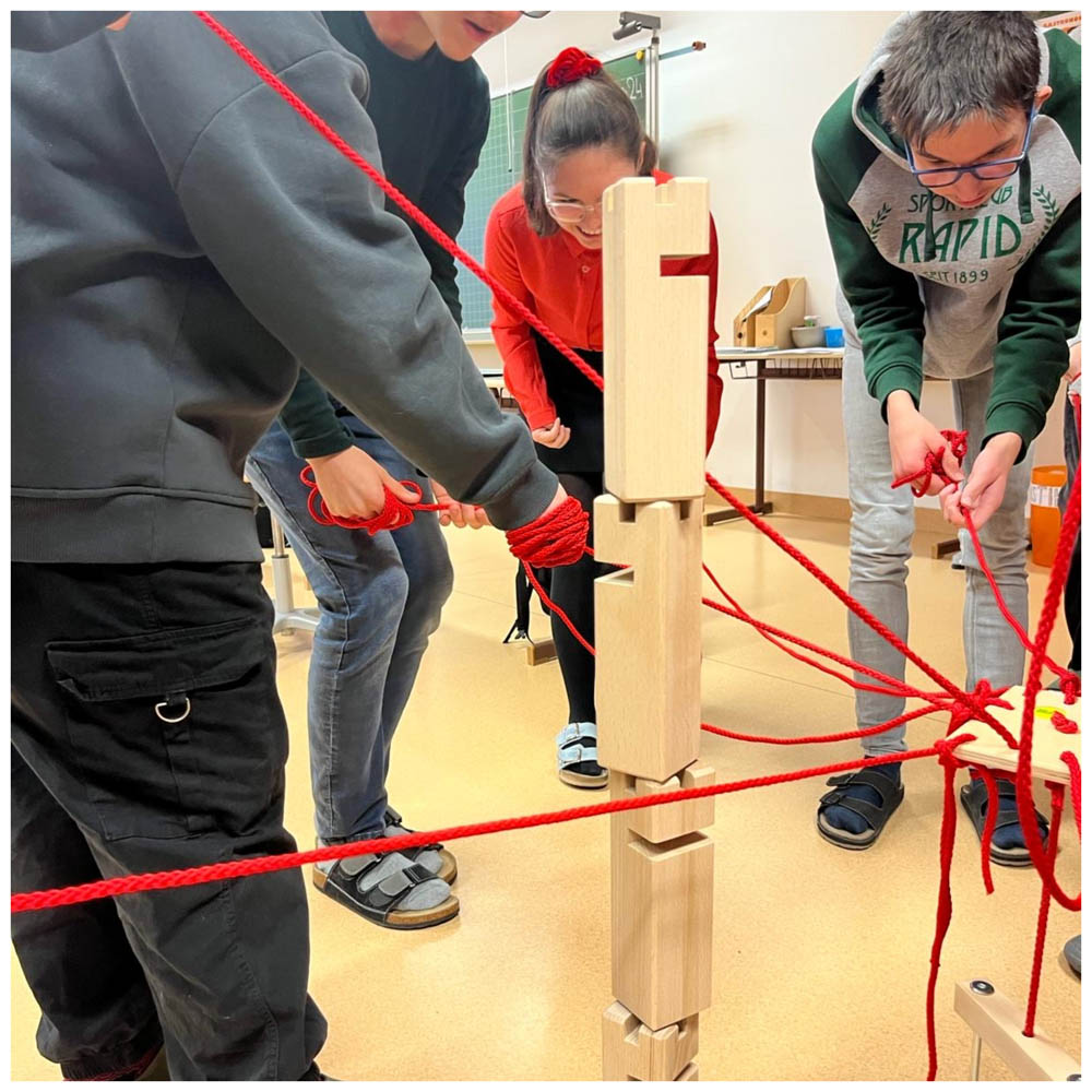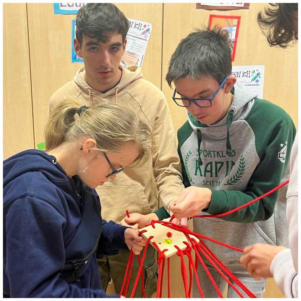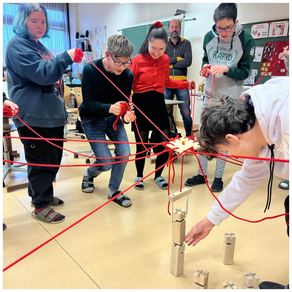Teamwork makes the dream work: Teamfähigkeit ist eine wichtige Kompetenz im späteren Berufsleben. Das trainierten die Schüler:innen der KiB1 mit einem herausfordernden Geschicklichkeitspiel. Alle waren begeistert dabei, jede:r musste seinen Beitrag leisten, aber gemeinsam wurde die Aufgabe toll gelöst.