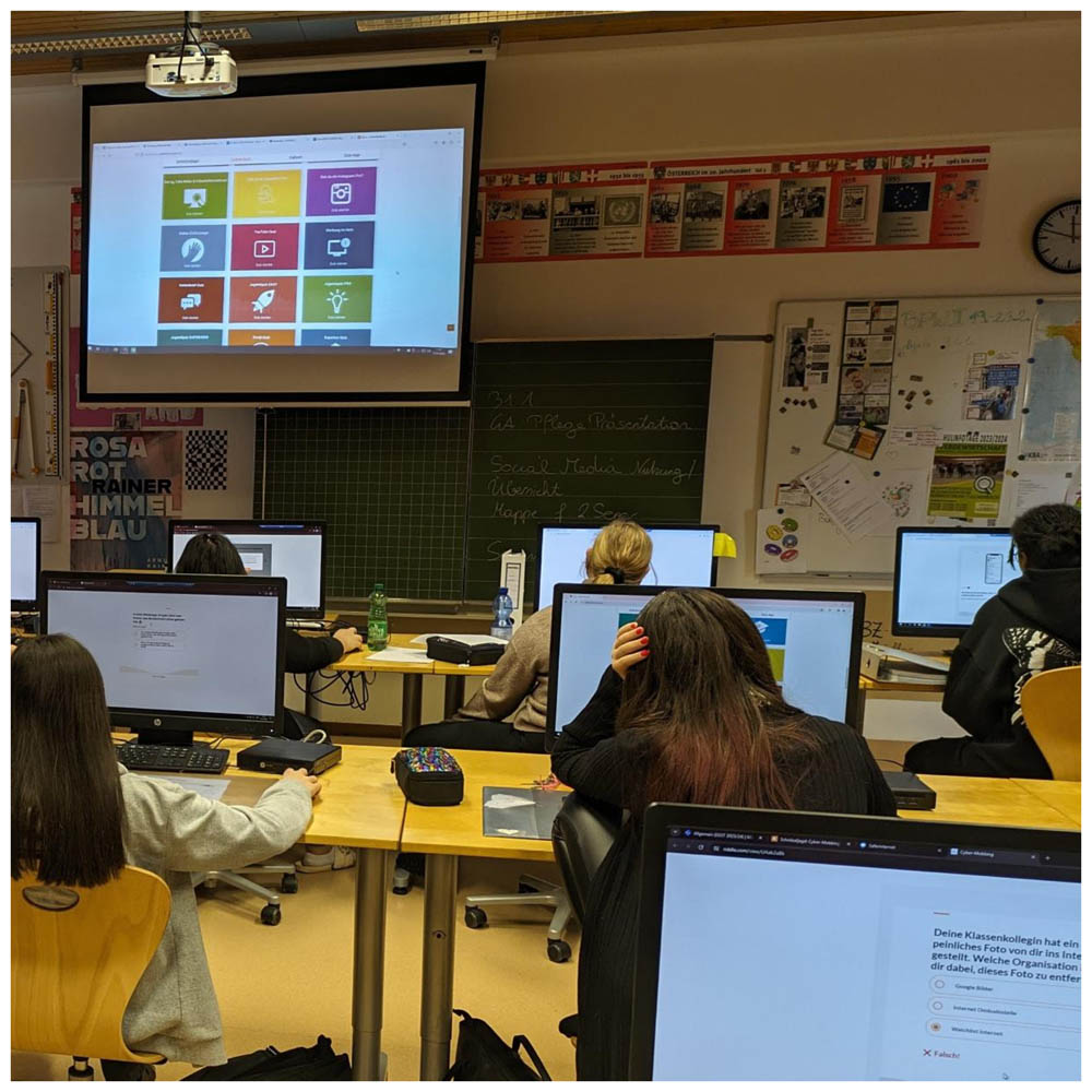 Der Monat Februar stand bei uns ganz unter dem Motto “Safer Internet Monat. Unsere Schüler:innen beschäftigten sich mit ihrem persönlichen Nutzungsverhalten diverser Social Media Apps. Wir besprachen die zahlreichen Vorteile, die wir durch das Internet haben und blickten kritisch auf die Gefahren, die die Digitalisierung mit sich bringt, auch auf den eigenen Internetauftritt im Bezug auf die Lehrstellenvergabe. Die Jugendlichen lösten auch verschiedene Quizzes rund um das Thema.