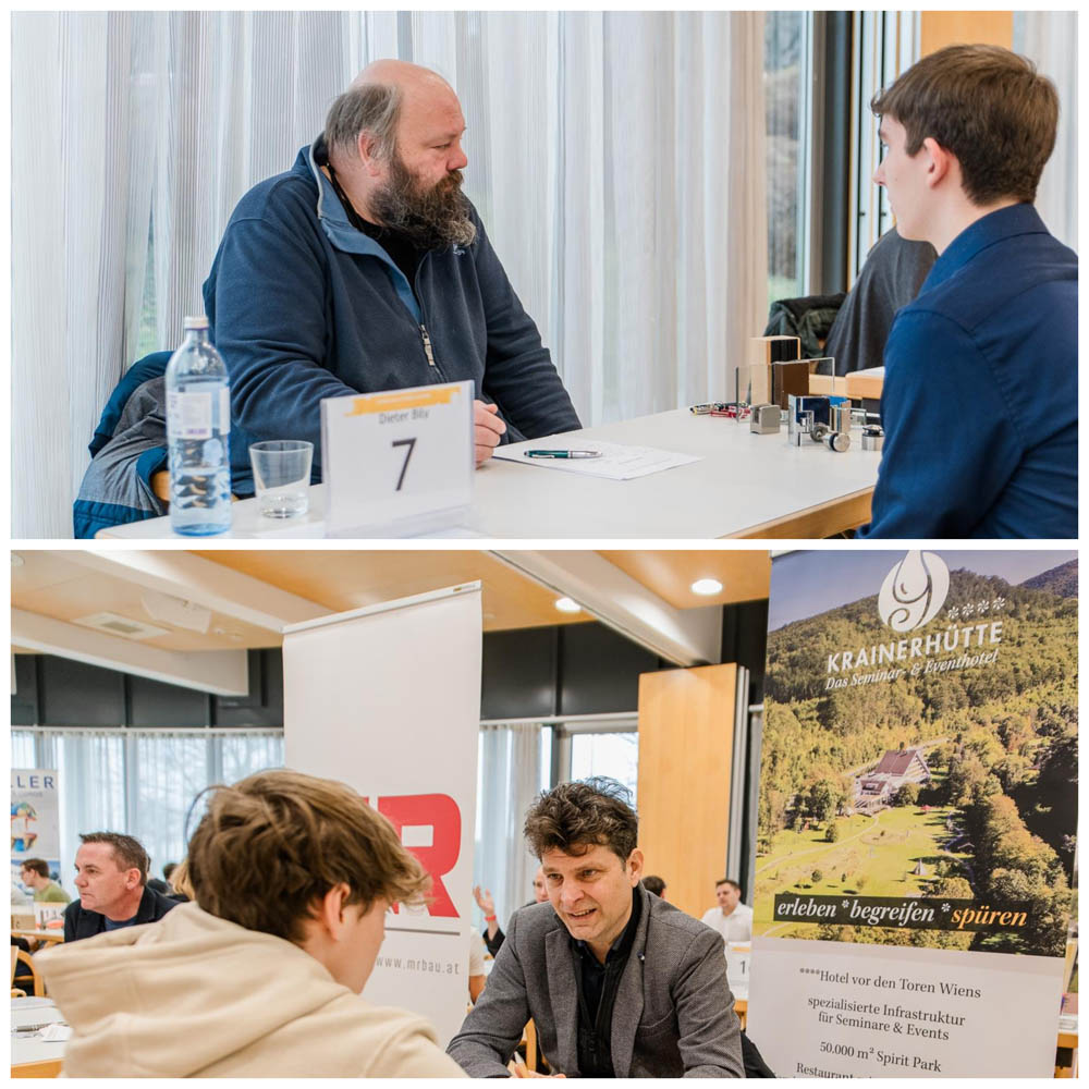 Auch interessierte Schüler:innen unserer Schule nahmen dieses Jahr am Lehrlings-Speed-Dating der Wirtschaftskammer Niederösterreich in Mödling teil. Die Veranstaltung war für die Jugendlichen, die im Sommer 2024 eine Lehre beginnen ein großartiger Erfolg, denn die ersten Lehrstellen und Schnuppertage konnten an diesem Tag mit den Betrieben ausgemacht werden. Wir bedanken uns für die tolle Organisation und freuen uns, dass rund 40 Unternehmen Vorstellungsgespräche durchgeführt haben.