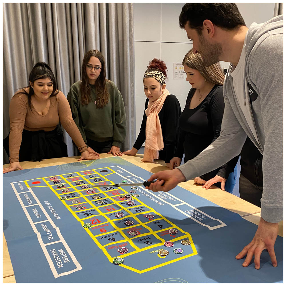 Die Verschuldung privater Haushalte steigt kontinuierlich an und v.a. Jugendliche tappen leicht in die Verschuldungsfalle. Deshalb hat Finanzbildung an unserer Schule einen hohen Stellenwert und besuchten die Wirtschaftsklasse Handel-Büro im März gleich zwei Workshops. Den AK-Workshop haben wir am Montag den 11.03.2024 in Baden besucht. Im Spiel schlüpften Schüler:innen in die Rolle von Familien mit unterschiedlichen Einkommenssituationen und mussten einen Haushaltsplan, der zu Budget und den Bedürfnissen Familie passt. Dabei spürten sie, wie die finanzielle Ausgangslage einer Familie die Konsummöglichkeiten beeinflusst und warum es wichtig ist, für Unvorhergesehenes zu sparen.
