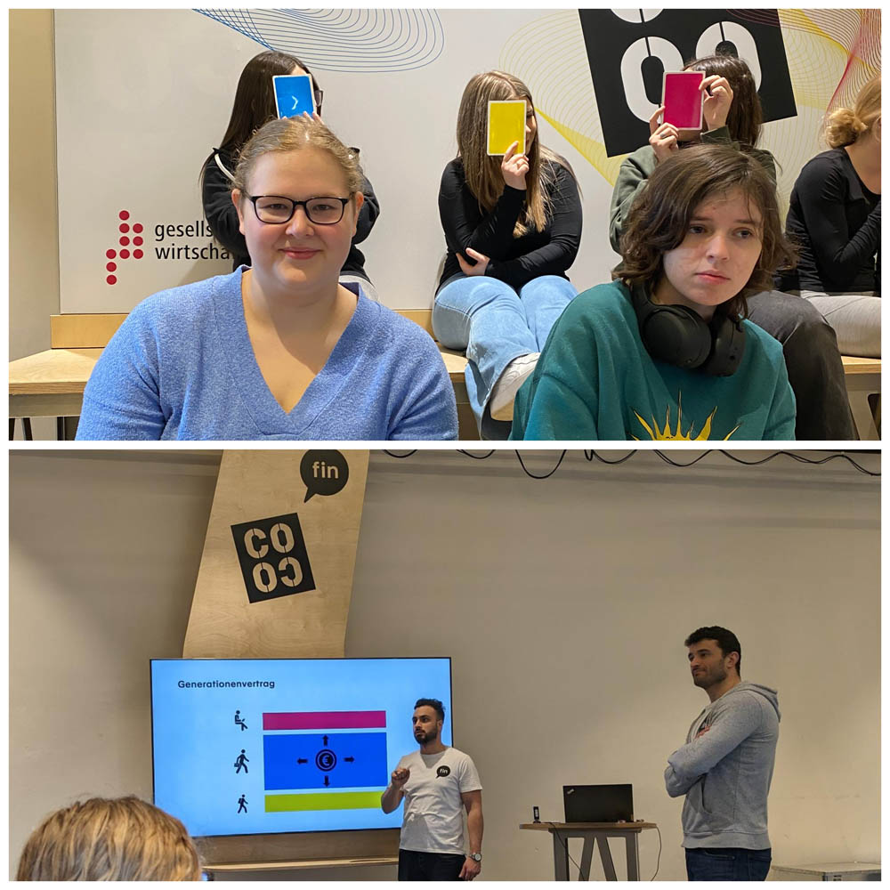 Am 15.03. nahmen die Schülerinnen der GSS-Klasse am Finanzbildungsprogramm aktiv teil. Der theoretische Input u.a. rund um den Umgang mit Geld, dem Generationenvertrag, dem Gender Pay Gap, verschiedener Dienstverhältnisse wurde ihnen auch spielerisch aktiv vermittelt. Sie spürten wie fordernd und belastend Beschäftigungsverhältnisse sein können, wie leicht man sein Geld verspielen kann und bekamen praktische Tipps, wie man sein Einkommen verwalten kann.