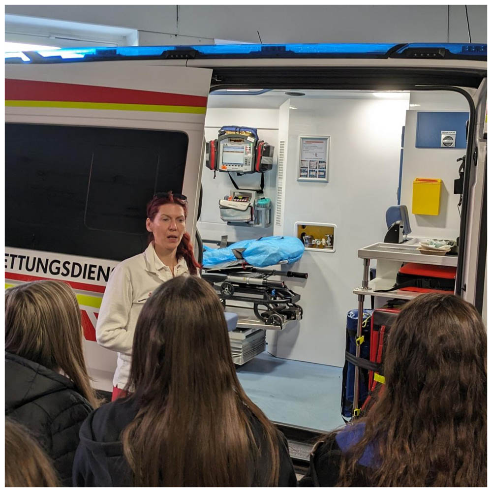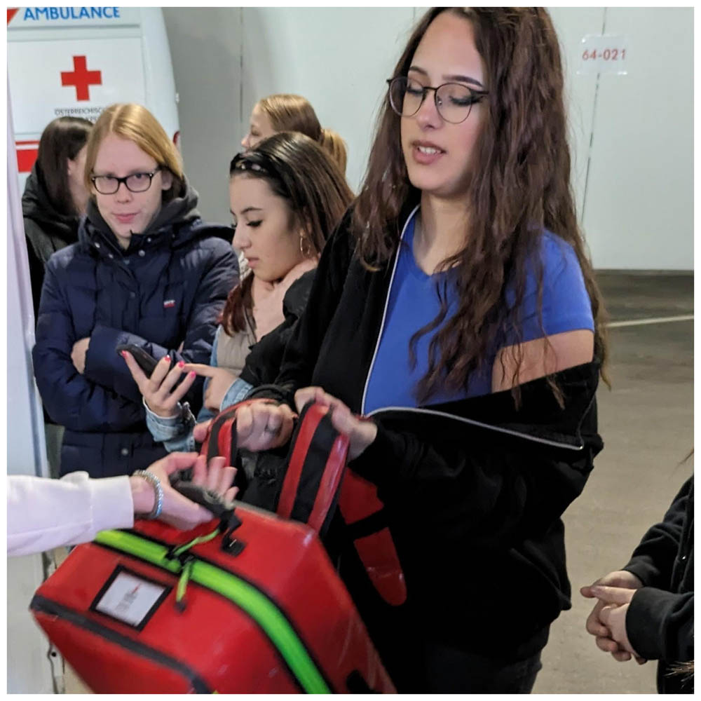 Am 20.03. lernten die Schülerinnen der GSS die Bezirksstelle des Roten Kreuzes Mödling kennen. Sie bekamen Einblick in das Ausbildungszentrum und die verschiedenen Ausbildungsmöglichkeiten, erfuhren was vor und im Einsatzfall zu beachten ist, wie die Ausrüstung und die Autos überprüft werden müssen. Weiters spürten sie wie körperlich fordernd das Tragen des Einsatz-Rucksackes ist und lernten eine Standardmaßnahme, Überprüfung der Sauerstoffsättigung kennen. Danke an Frau Seidel für die wertvollen Einblicke.