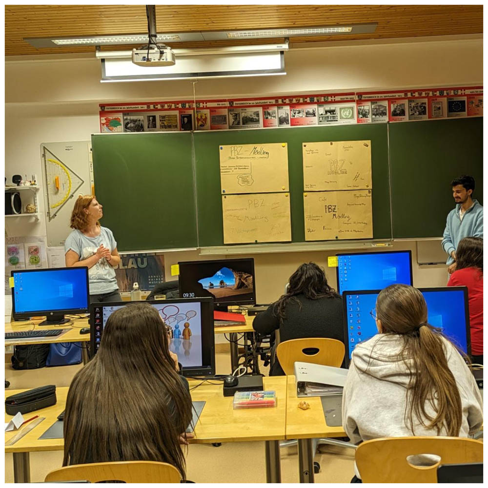 Im Rahmen des Fachpraxis-Unterrichts lernte die GSS-Gruppe am 25.10. das Pflege- und Betreuungszentrum in Mödling kennen. Frau Kroupa erörterte gemeinsam mit den Schülerinnen: wer bzw. was das PBZ Mödling ist, welche Bereiche es gibt und wer dort wohnt. Außerdem welche Berufe im PBZ vertreten sind und welche Lehrberufe angeboten werden. Es wurde auch besprochen, wie der Berufsalltag aussieht und welches die größten Herausforderungen sind.